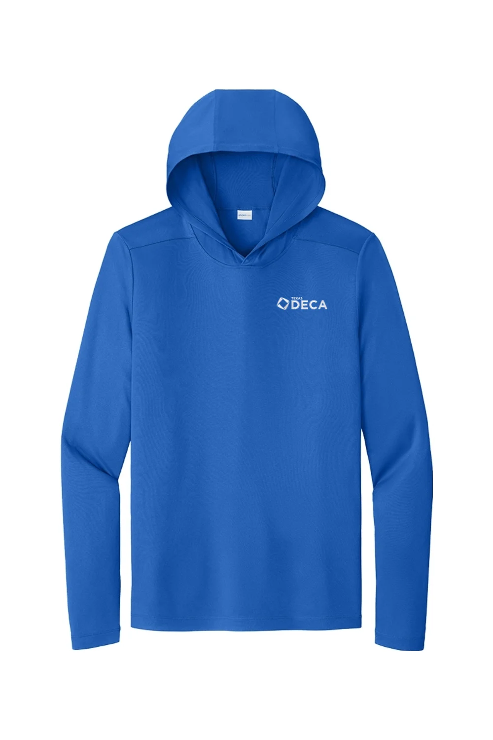 This Texas Deca performance long sleeve hoodie is built for all-day comfort with lightweight polyester interlock that wicks moisture and feels smooth against the skin. With UPF 50 protection, it is a smart pick for outdoor work, events, and active days when sun coverage matters.