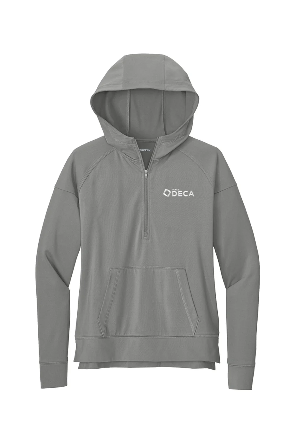 This Texas Deca 1/2-zip hoodie is built for action and everyday comfort, made from a smooth poly/spandex blend that stretches easily and wicks moisture to help you stay dry. Lightweight and flexible, it is an easy layer for warmups, travel, and busy days on the move.
